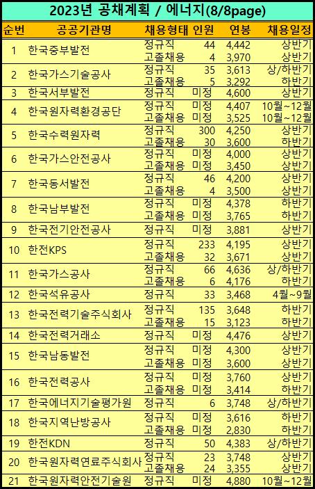 2023년 공공기관 채용계획표를 만들었습니다.